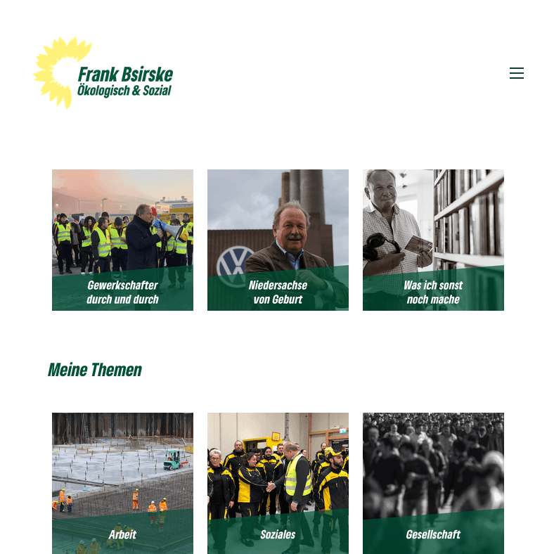 For this project we implemented design concepts to build an esthetic and functional website. We aligned our concept with the corporate identity of the Bündnis 90/Die Grünen party, in order to create a consistent appearance across Mr Frank Bsirske's assets and the party's.